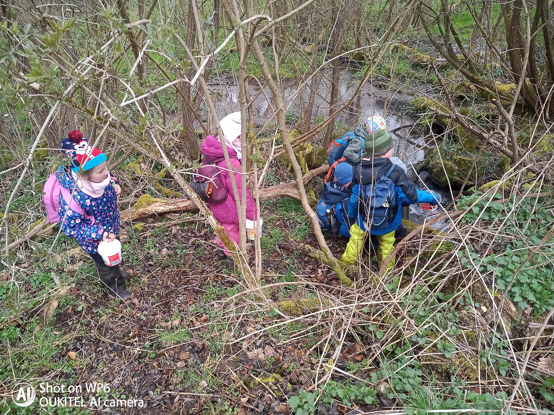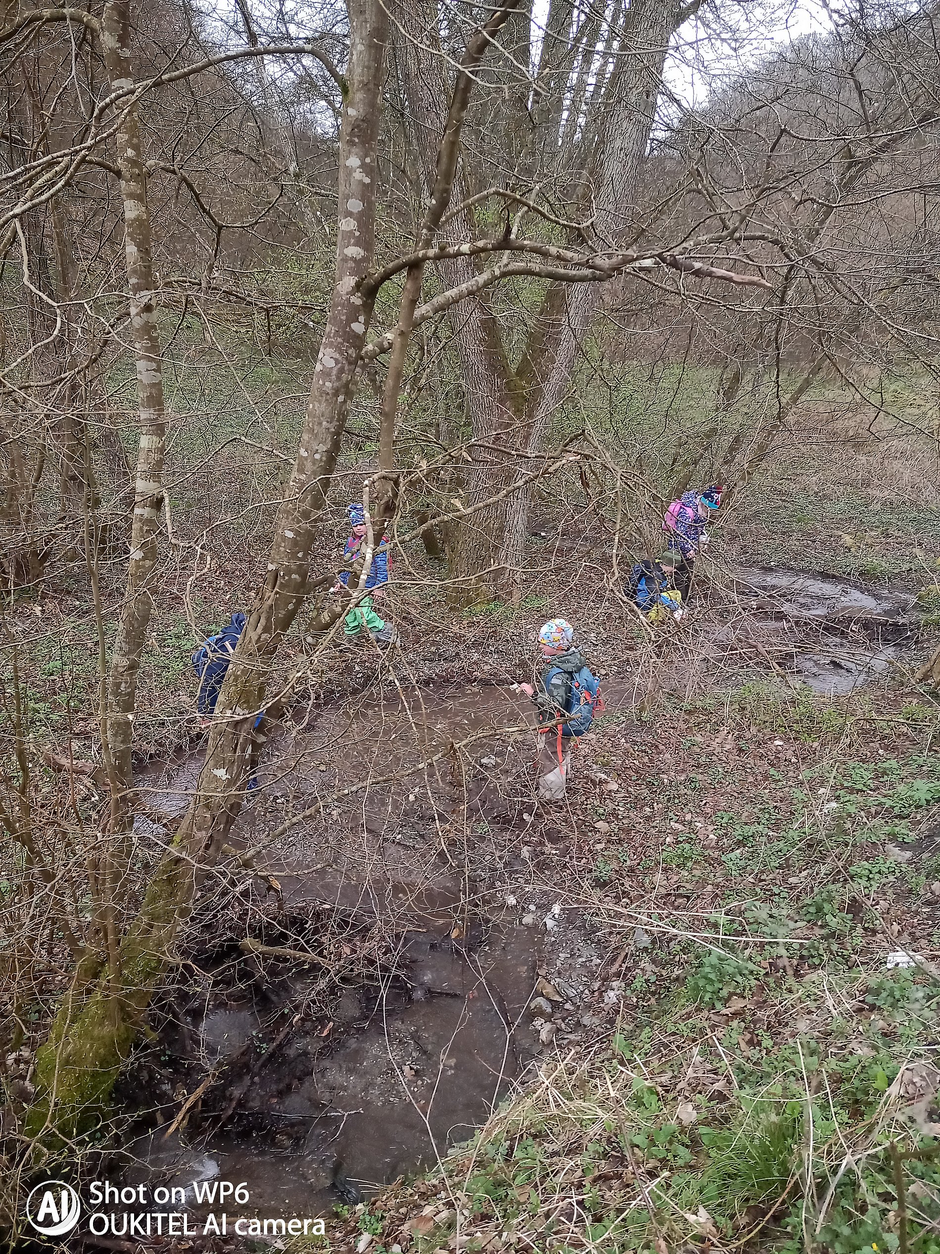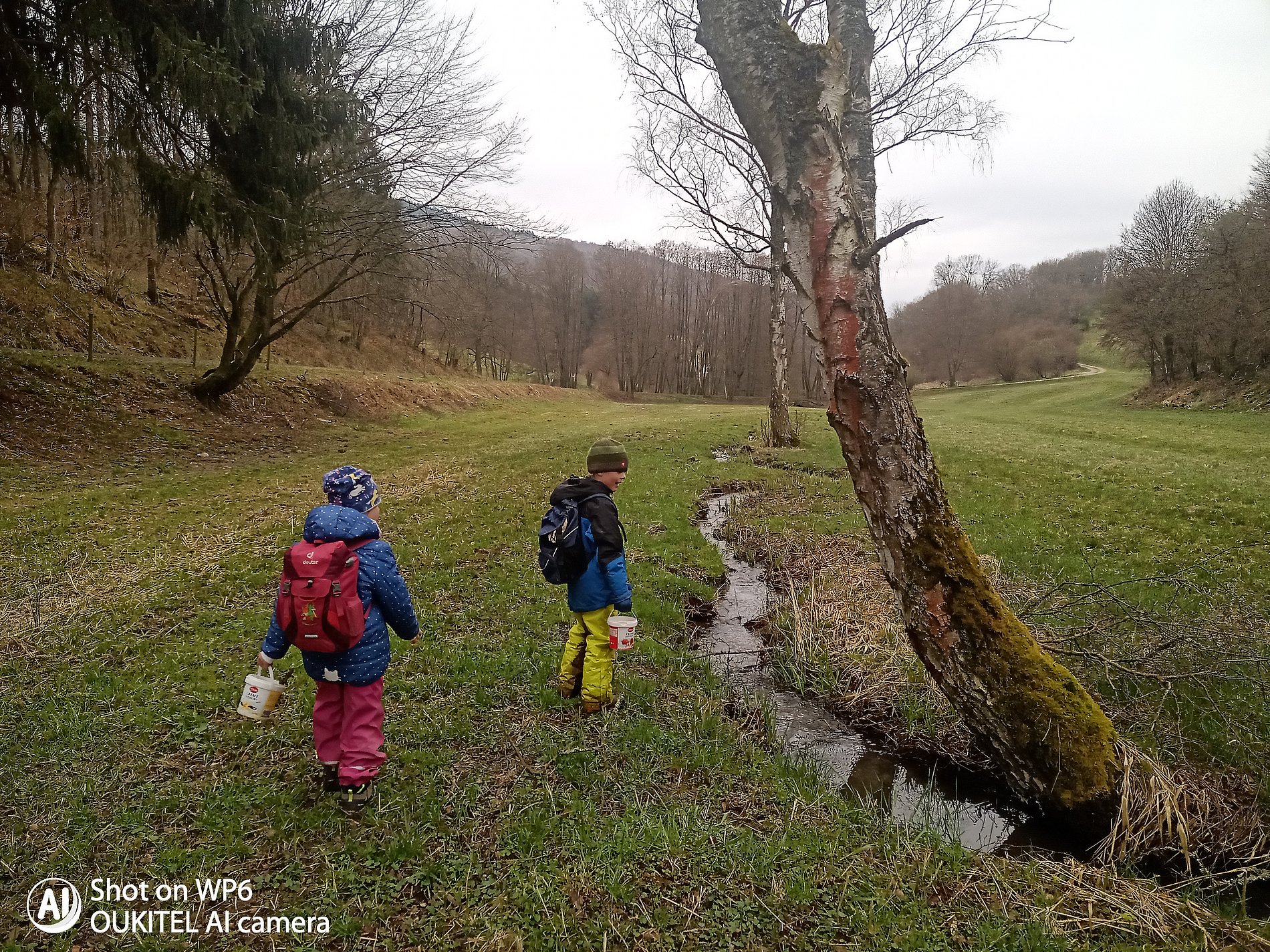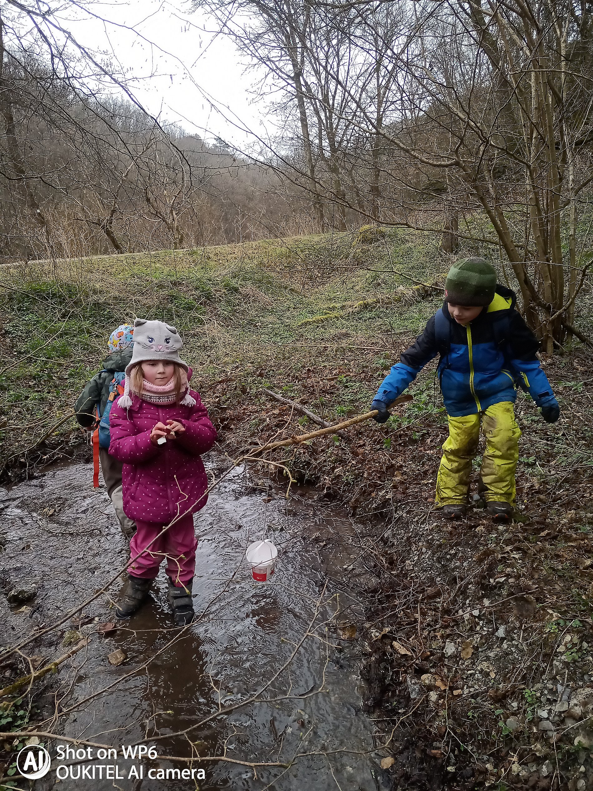 Am Kindergarten ging es los und dann erstmal die Grohlochstraße runter zur Quelle des Baches