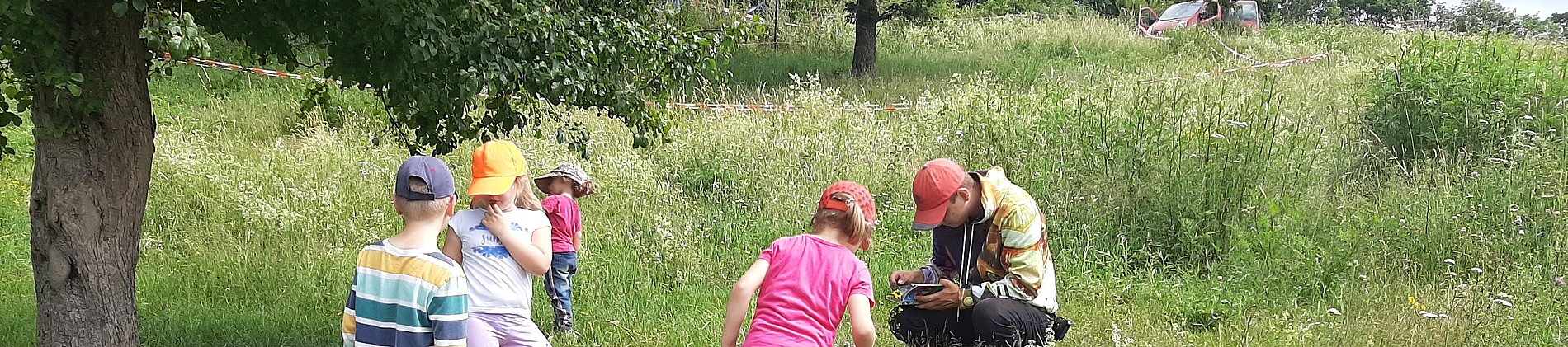 Dort bestimmen wir Pflanzen auf einer großen Weide, sammeln Schnecken und Käfer, rutschen den Hügel hinunter, machen uns dreckig, Kochen auf dem Feuer, gehen Spazieren und machen Waldausflüge.